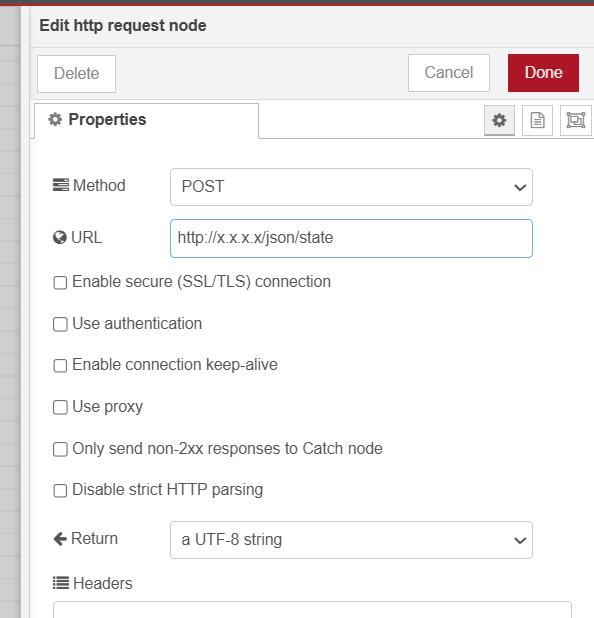 return msg;Send the above block into a POST Node Red node.